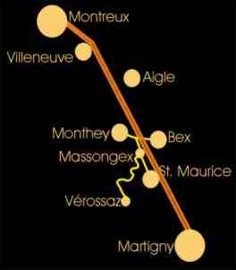 par Massongex, 6 km. depuis l'autoroute à partir de la sortie Bex-Lavey.